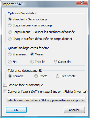 3ds Max ouvre la boîte de dialogue Importer SAT.
