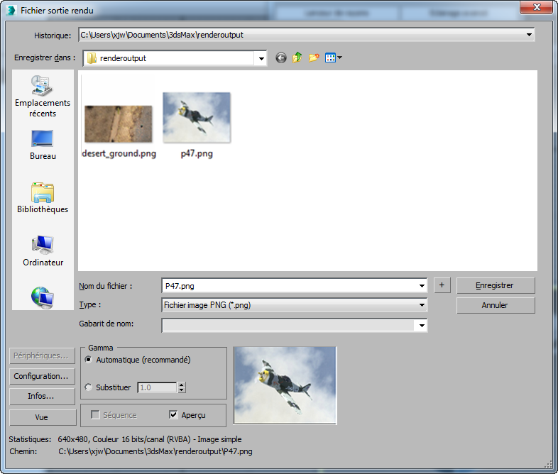 - Choisissez le type de fichier de rendu dans la liste déroulante Enregistrer sous, puis cliquez sur Enregistrer.