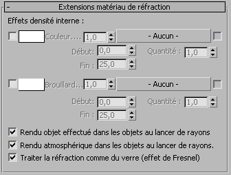 Les commandes de ce panneau déroulant vous permettent de mettre au point l'effet de la map Lancer de rayons sur la composante Réfraction d'un matériau.