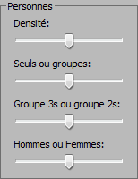 - Rapport de personnes homme/femme. Pour augmenter le nombre d'hommes, faites glisser le curseur vers la gauche ; pour augmenter le nombre de femmes, faites-le glisser vers la droite.