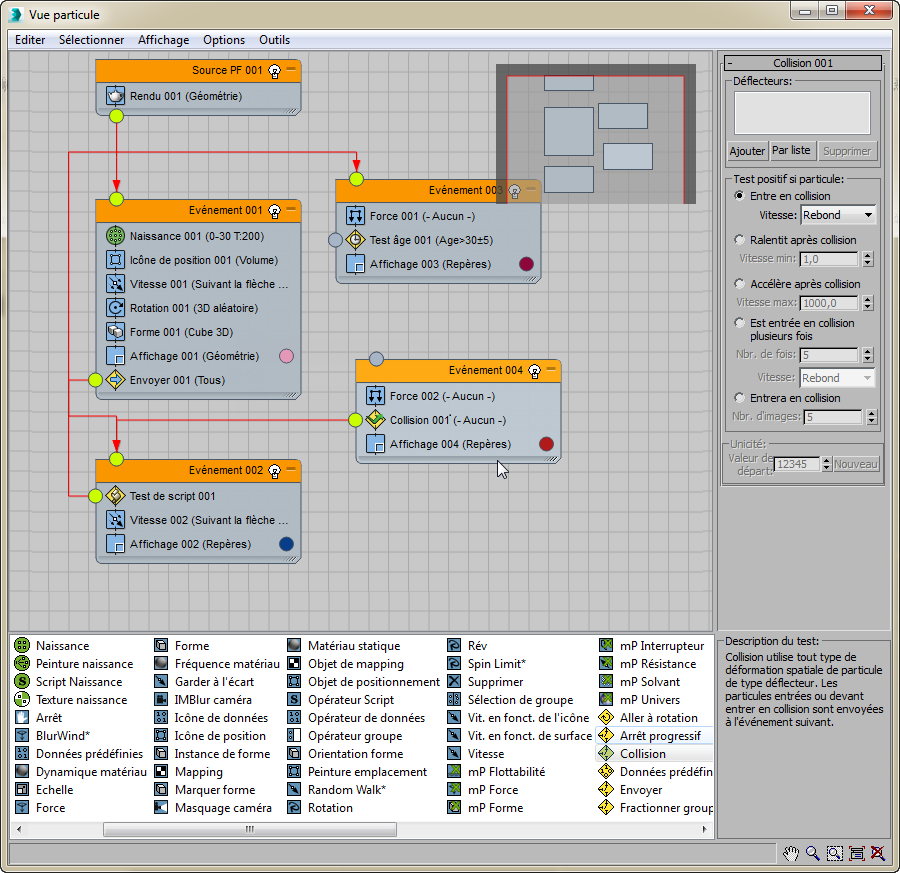 Grâce à une interface utilisateur mise à jour dans l'éditeur graphique Flux de particules, l'utilisation de cet éditeur est désormais étroitement liée à l'éditeur de matériaux détaillé.