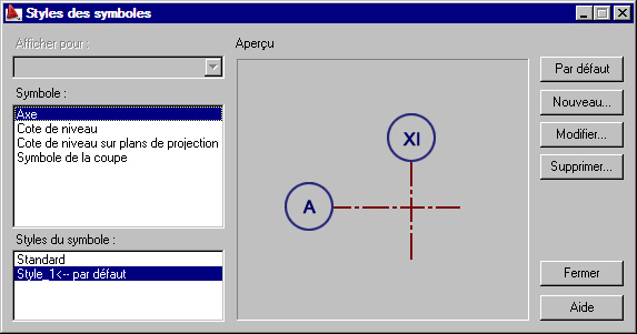 - Par défaut : cliquez sur ce bouton pour restaurer le symbole par défaut (standard) d'un axe, d'un niveau ou d'une coupe.
