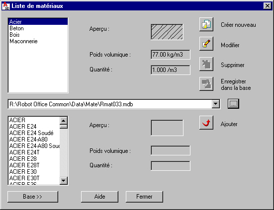 (Ajouter). Le matériau est ajouté à la liste disponible dans la partie supérieure de la boîte de dialogue.
