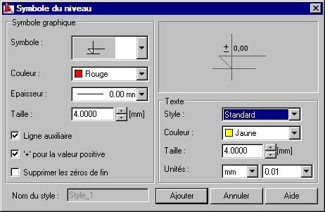 La boîte de dialogue sert à définir/modifier le style de la cote de niveau.