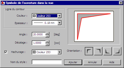 La boîte de dialogue sert à définir/modifier le style de l’annotation des ouvertures dans la vue.