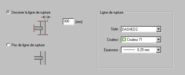 Dessiner la ligne de rupture : sélectionnez cette option pour afficher les lignes de rupture. Les options suivantes sont disponibles dans cet onglet :