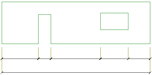Si vous sélectionnez une option dans l'onglet Eléments Autodesk AutoCAD Structural Detailing ou l'onglet Eléments ACAD, l'intersection de ces éléments (les voiles et les poutres d'un modèle de structure, par exemple) avec une ligne auxiliaire créera les lignes de cote correspondantes.