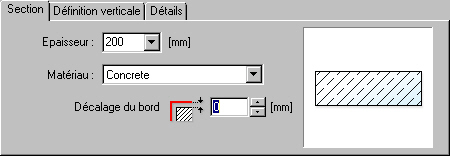 Dans l'onglet Section de la boîte de dialogue Dalle : définition, vous pouvez définir les paramètres d'une section transversale de dalle.