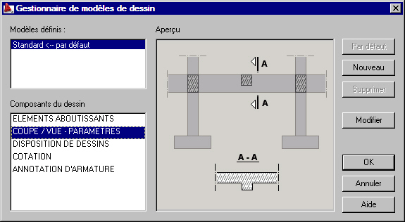 - Par défaut – le gabarit sélectionné devient le gabarit par défaut pour le composant du dessin choisi