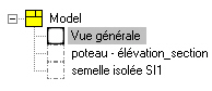 - Procédez de la même manière pendant la création de la vue des projections de la semelle isolée (nom de la vue : semelle isolée SI1, échelle par défaut).