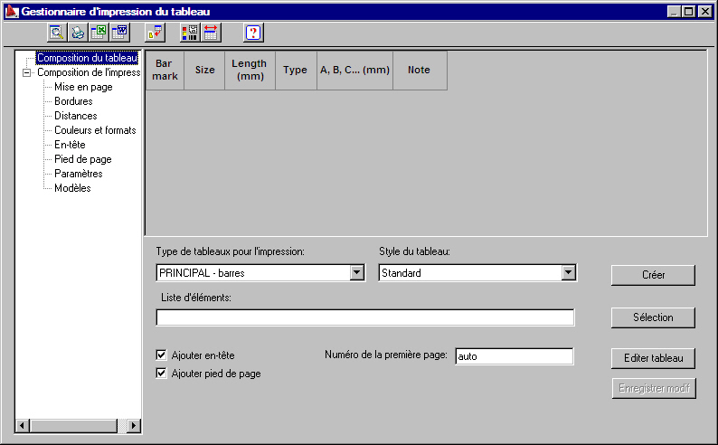 Cette option permet de définir/modifier l’aspect des tableaux de nomenclature acier qui seront imprimés.