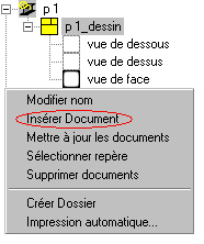 - Indiquer le repère et cliquer sur le bouton droit de la souris ; choisir l’option Insérer document du menu contextuel