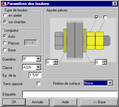 La partie gauche de la boîte de dialogue contient les informations de base concernant les boulons utilisés, à savoir :