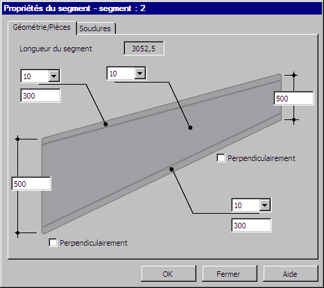 - hauteur de l’âme à l’origine et à l’extrémité de la poutre (le mode définition dépend de l’option Perpendiculairement).