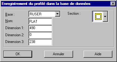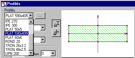 - entrer le nom du profilé, p.ex. PLAT 590x4050 (le nom peut être composé de 4 lettres et symboles décrivant les dimensions du profilé)