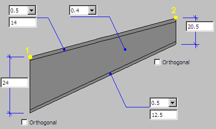 - Dans la zone de dessin, cliquez pour spécifier la position du point 1 (le début de la poutre à âme pleine) et le point 2 (l'extrémité de la poutre à âme pleine), comme indiqué.