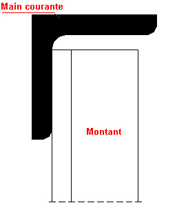 : la main courante est coupée par le plan vertical à l’origine et à l’extrémité du garde-corps