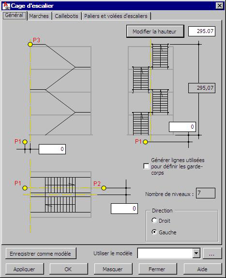 Utilisez les options de la boîte de dialogue Cage d'escalier pour définir la géométrie :