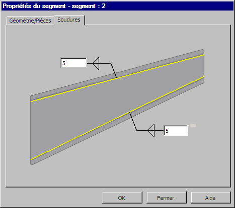 La boîte de dialogue sert à définir les paramètres des soudures du segment choisi de la poutre à plusieurs segments.