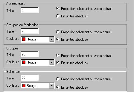 - Taille - permet de définir la taille du symbole de groupe de fabrication