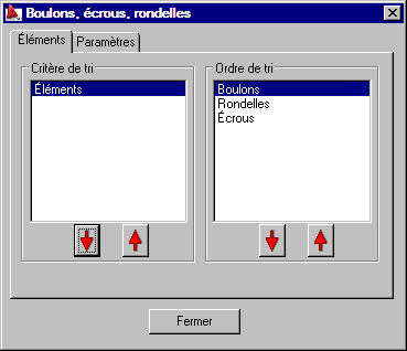 pour le déplacer vers le haut ou vers le bas de la liste, afin de définir l'ordre de tri.