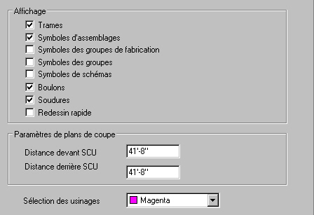 La partie inférieure de la boîte de dialogue contient le champ de sélection de la couleur des usinages effectués sur les éléments du modèle de la structure.