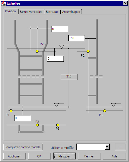 Vous pouvez définir la géométrie des échelles en acier.