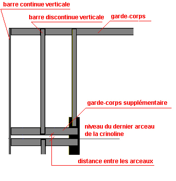 - la sortie est composée de deux garde-corps : supérieur et inférieur (les profilés sont continus et de même type que le celui de l'arceau)