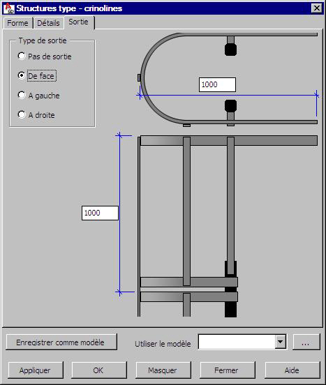 - les dimensions de la sortie sont définies dans la boîte de dialogue au moyen de deux paramètres : la hauteur du garde-corps et la longueur du garde-corps