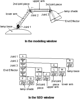 L'exemple suivant illustre une lampe de bureau et sa hiérarchie de squelette :