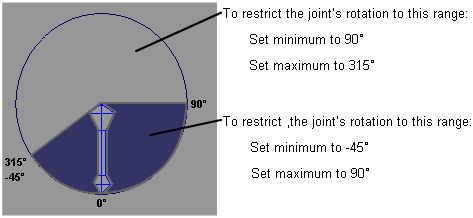 Si cette option est définie sur actif, la liaison utilise les limites définies dans les deux colonnes , Minimum et Maximum, pendant les transformations. Cette option est utile si vous souhaitez un composant pour déplacer au sein d'un intervalle de liaison spécifié. Par exemple, une liaison noeud représentant un coude peut avoir une plage de 0 à 170 degrés. Si l'option Utiliser les limites est activée, et ces limites des intervalles définis, l'articulation du coude ne prend pas une valeur en dehors de cet intervalle au cours d'une transformation.