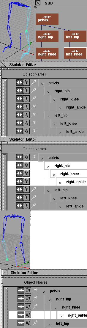 3. Dans la liste squelette de l'éditeur de, sélectionnez toutes les connexions de la jambe droite (right_hip, right_knee, right_ankle).