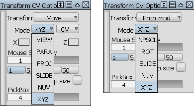 Cliquez sur le menu contextuel pour sélectionner CV ou coque. Le menu Mode de droite contrôle l'objet auquel l'action s'applique à gauche et le menu Mode détermine l'action.