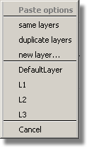 Vous pouvez également coller dans les calques existants en la sélectionnant dans la liste (par exemple, L1, L2, etc.)