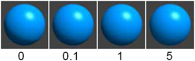La distance, la lumière peut pénétrer dans une surface. La plage de la glissière est 0 à 5. La valeur par défaut est 0.5.