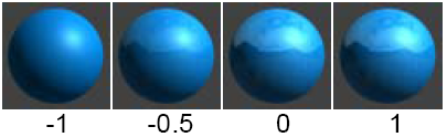 La plage des valeurs autorisées est de 0 à l'infini. La plage est comprise entre 0 (aucune réflexion) et 1 (réflexions transparent). La valeur par défaut est 0.5.