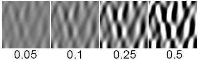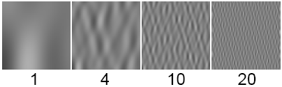 Le nombre minimum et maximum d'itérations utilisées pour calculer le motif de la texture. Ce paramètre détermine la manière dont la texture est détaillé. La plage de la glissière est 0 et 25. La valeur par défaut est de 0 pour Level_min et 20 pour Level_max.
