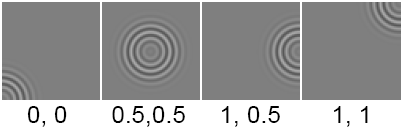 L'emplacement du centre des rides sur les directions U et V paramétrique. La plage de la glissière est 0 à 1. La valeur par défaut est 0.5.