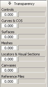 Ce jeu d'options vous permet de contrôler le niveau de transparence des géométries et d'autres éléments tels que les localisateurs et des zones de dessin.