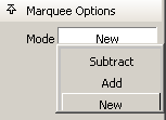 Vous permet de créer une zone de sélection (nouveau), Ajouter à la zone de sélection (Ajouter) ou Soustraire de la zone de sélection (Soustraction).