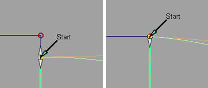 Lorsque vecteur est activée, une continuité de position est réalisé en premier, puis la tangence et la courbure des lignes de CV sont contraints de se déplacer le long du vecteur sélectionné. (Reportez-vous à la rubrique Options de vecteur).