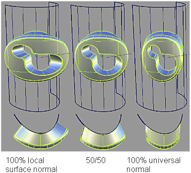 Choisissez ce mode permet de déterminer la façon dont les arêtes de la cible correspond à la destination. Si la valeur est égale à 0,0, 100 % de la normale locale de la destination est utilisé. Une valeur de 1,0 signifie que la normale de la destination trouvé sur le centre de la cible est utilisé universally. Le résultat est que les côtés de la cible sont parallèles. Ainsi, le nom du matériau. La valeur par défaut de ce curseur est 1.0. Vous pouvez également utiliser le curseur pour fusionner les deux effets.