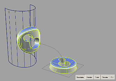 Utilisez le mode Translater pour choisir la position de la cible par rapport à la cible. Chaque jeu de cibles définit un point appelé point de contact. Lorsque l'animation est le premier jeu vers le haut, le point de contact est placée au milieu de la base de la boîte englobante de la cible. La conversion est basée sur le point de contact de votre cible. Lorsque la destination est l'intégralité d'une surface ou d'un maillage ou un jeu de surfaces de contact stitchable, ce point peut être positionné à tout point sur la cible. Si la destination est une surface courbe, le point de contact est contraint pour se déplacer le long de la courbe. Si l'arrivée est un point de la surface, la cible ne peut pas être déplacé ; toutefois, si vous déplacez le point de la surface, la cible.