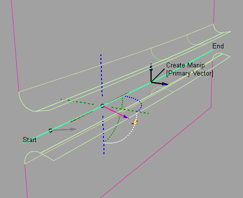Créer une étiquette appelée Manip [espace ] apparaît sur le modèle à proximité du centre de la courbe. Cliquez sur[espace ] bascule entre[principal vecteur ],[secondaire vecteur ], puis sur [ espace ]. Ce paramètre détermine le type de manipulateur qui est créé lorsque vous cliquez sur l'entrée de la courbe. Le comportement est le même que le paramètre Créer Manip dans la fenêtre de contrôle.