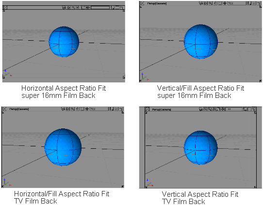 Gère la façon dont la caméra de la fenêtre affiche la vue de la caméra. Si la forme de la caméra de la fenêtre n'est pas la même que la forme de la caméra dos filmde la fenêtre d'affichage peut ajuster la vue de la caméra dans une cote uniquement (Horizontal ou verticale). Le paramètre par défaut est de remplissage qui adapte automatiquement la vue de la caméra dans la fenêtre de la caméra (dans le sens horizontal ou vertical de sorte que la vue caméra remplit la fenêtre