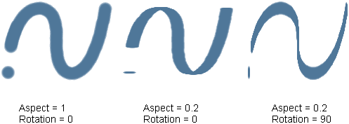 La rotation est l'angle (en degrés) du tampon du pinceau. Lorsque Aspect est inférieure à 1, le changement de rotation effectue le tampon de pinceau plus horizontaux ou verticaux (90). (0) La plage est comprise entre 0 et 360.