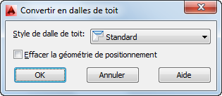 . La fiche de travail Convertir en dalles de toit affiche les styles de dalle de toit existants dans votre dessin en cours.