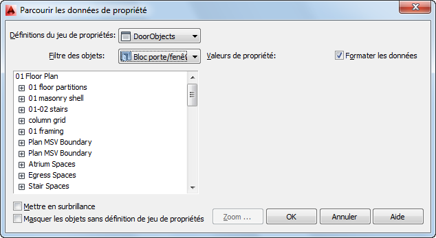 10. Pour afficher les propriétés en leur appliquant le style de format de données correct à partir de la définition de jeux de propriétés, sélectionnez Formater les données.