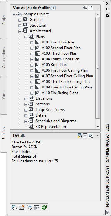 Jeu de feuilles du projet dans le Navigateur du projet AutoCAD Architecture