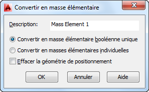 - Pour convertir les objets sélectionnés en masses élémentaires distinctes, sélectionnez l'option Convertir en masses élémentaires individuelles.